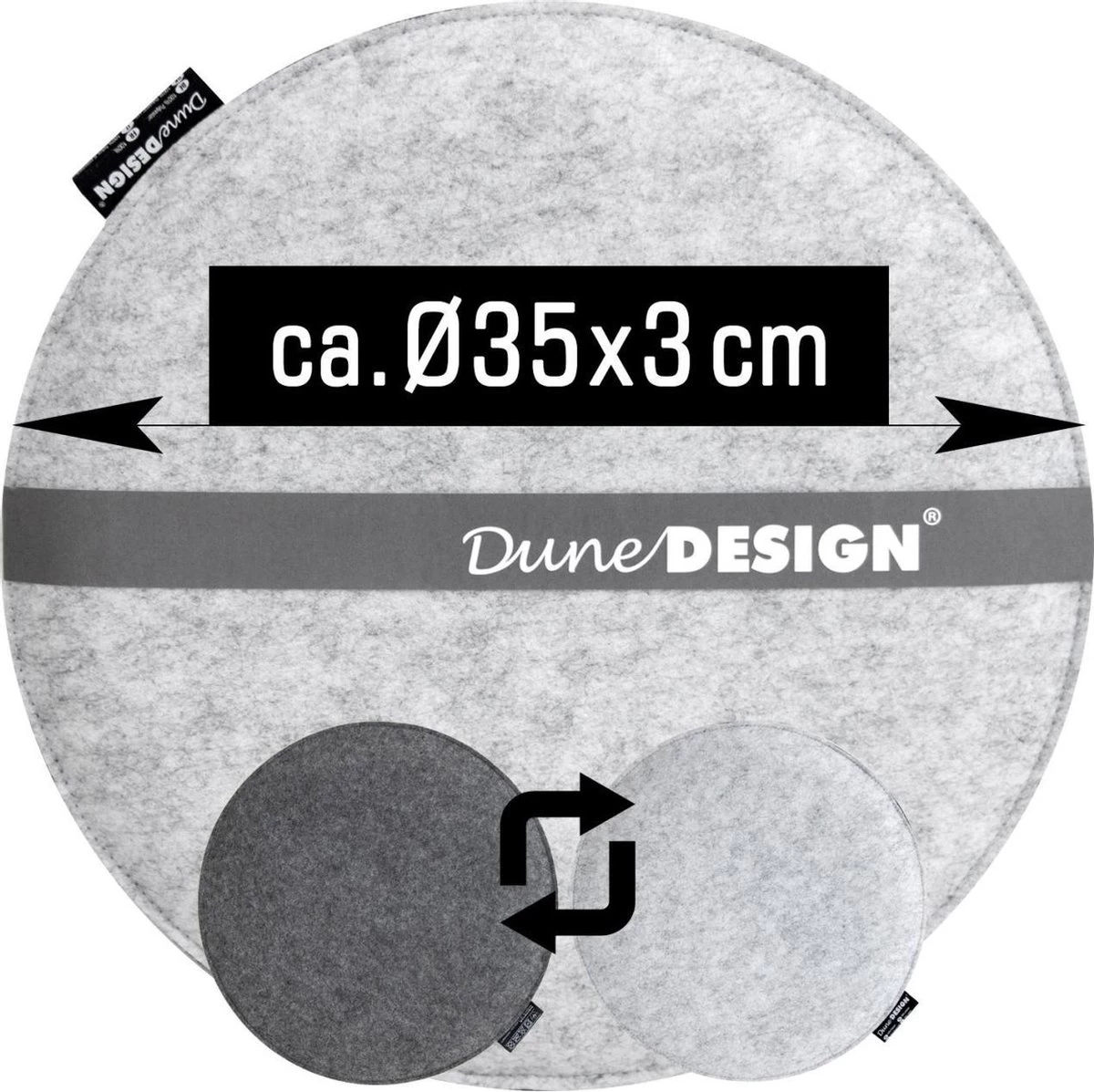 30mm Vilten Zitkussen Rond – Ø 35cm Stoelkussen Stoelpad Zacht 2-kleurig Grijs