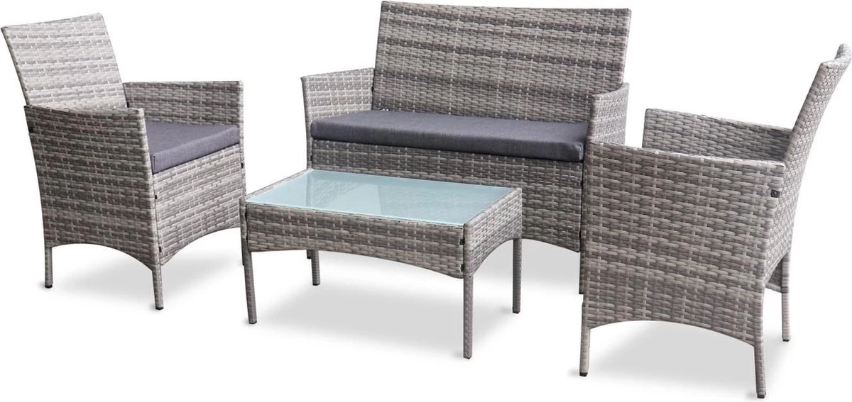 Alice’s Garden Loungeset Moltès – 4 Plaatsen – Wicker – Kleine Set – Tinten Grijs/grijs