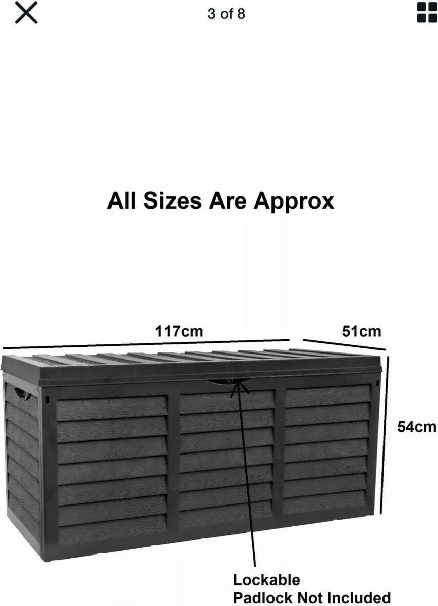 Zwarte kunststof opbergdoos voor buiten met wielen 320 liter