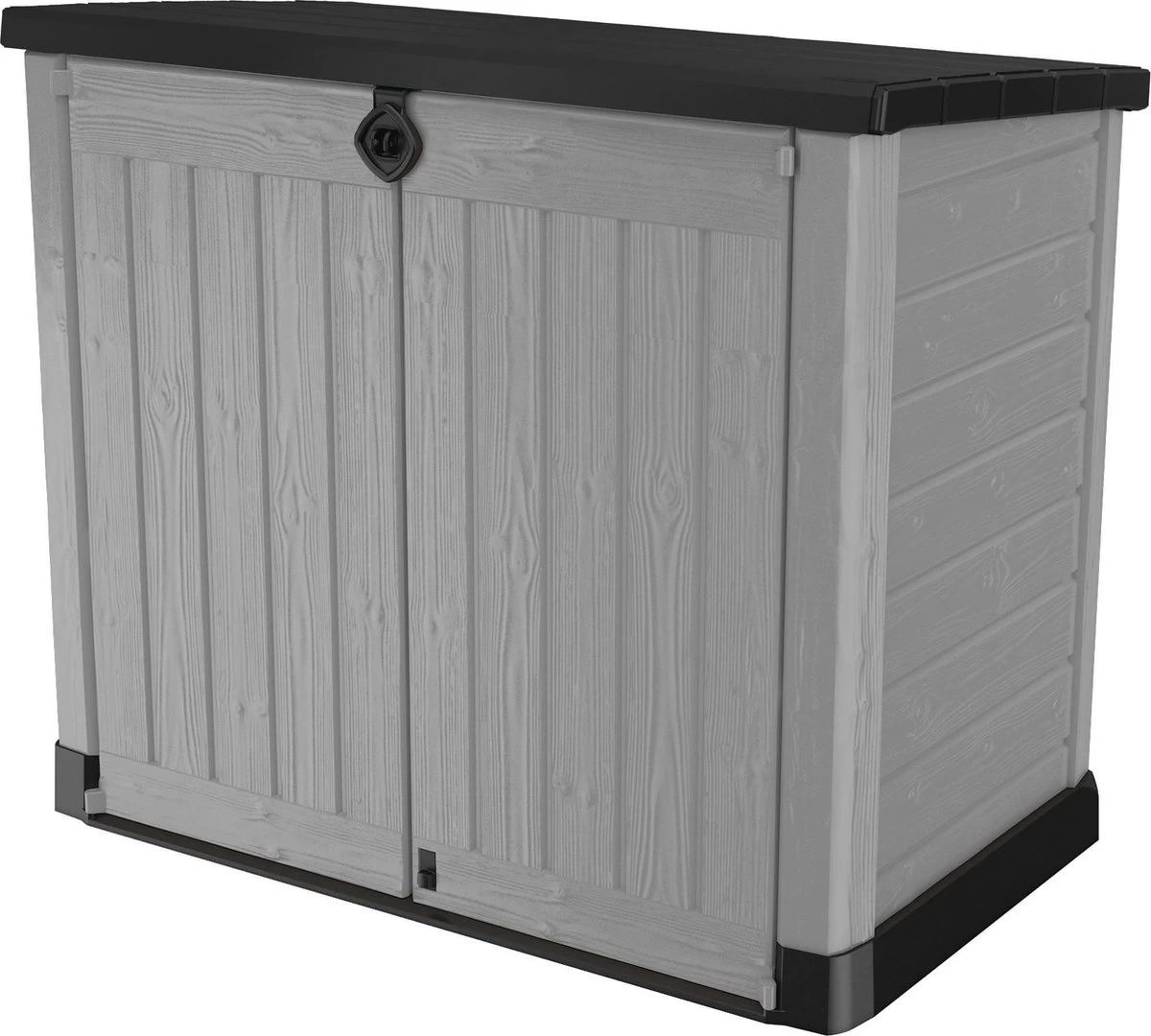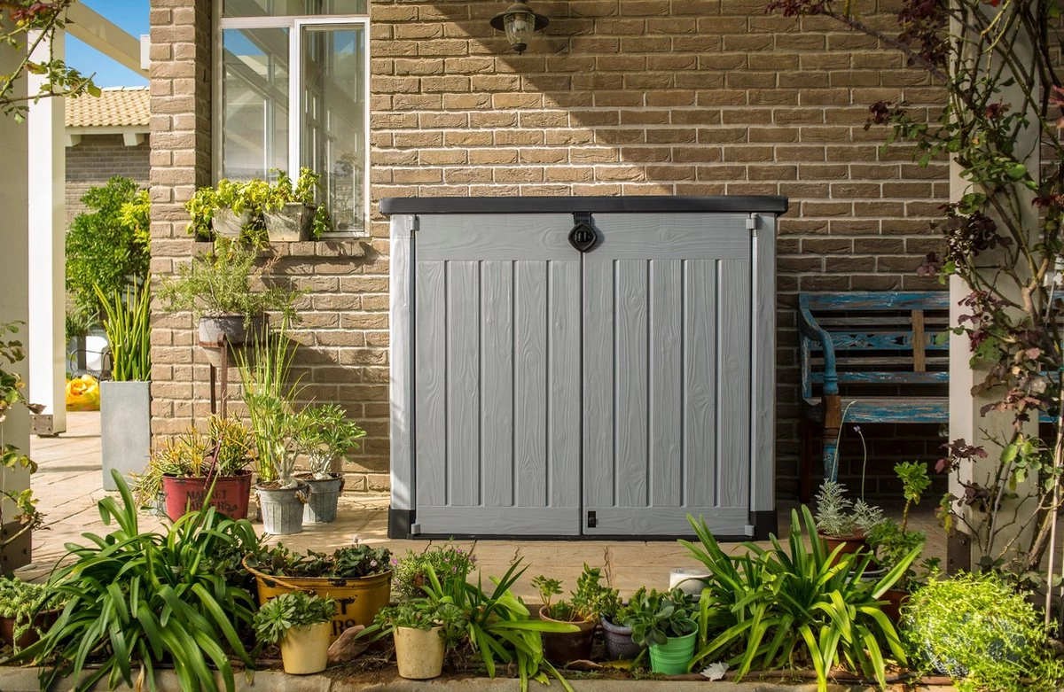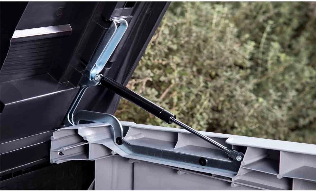 Weet jij niet waar je al jouw tuinspullen op moet slaan? Deze handige opbergbox van het merk Keter biedt de oplossing. De opbergbox heeft een capaciteit van 1200 liter en is daarmee perfect geschikt voor het opbergen van tuingereedschap, kussens, buitenspeelgoed of 2 containers van 240 liter. De weerbestendige constructie zorgt ervoor dat je spullen droog en geventileerd blijven. Voor extra gemak is er een hellende drempel aan de voorkant van de opbergbox gemaakt zodat je de spullen gemakkelijk in en uit de berging kunt halen. Ideaal aan deze opbergbox is dat er zowel vanaf de bovenkant als aan de voorkant toegang tot de berging is. De bovenkant is voorzien van een deksel die gemakkelijk te openen is dankzij de hydraulische veren. Aan de voorkant zitten 2 afsluitbare deuren zodat je ook gemakkelijk je grasmaaier of barbecue er in kunt rijden. Na ontvangst dient de Keter Store-it-out Ace nog gemonteerd te worden. Dit is eenvoudig uit te voeren met behulp van de meegeleverde handleiding.