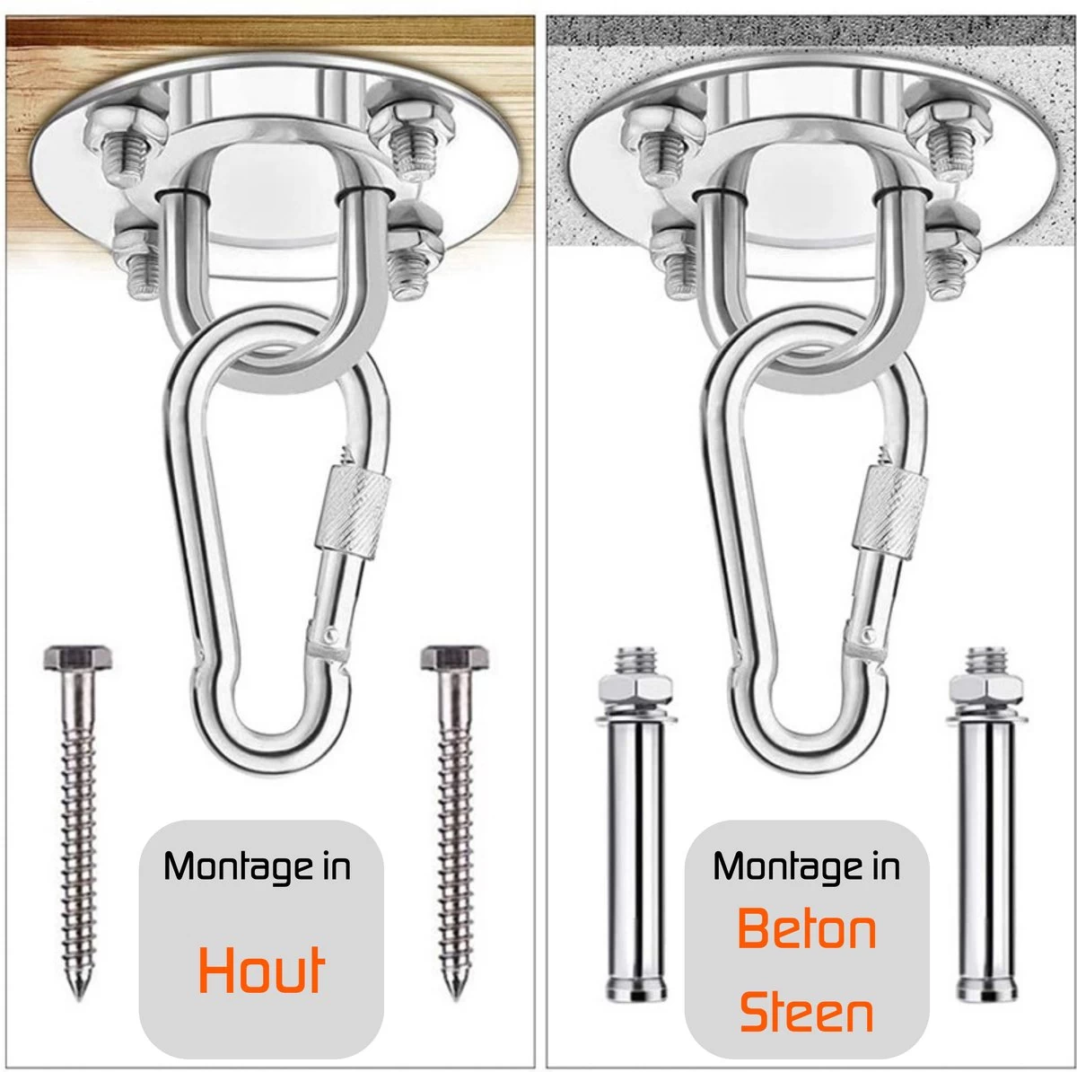 Plafondhaak – Voor Beton En Hout – Hangstoel – Hangmat – Bokszak – RVS – Binnen En Buiten – Ophangsysteem – Ophanghaak – 400KG