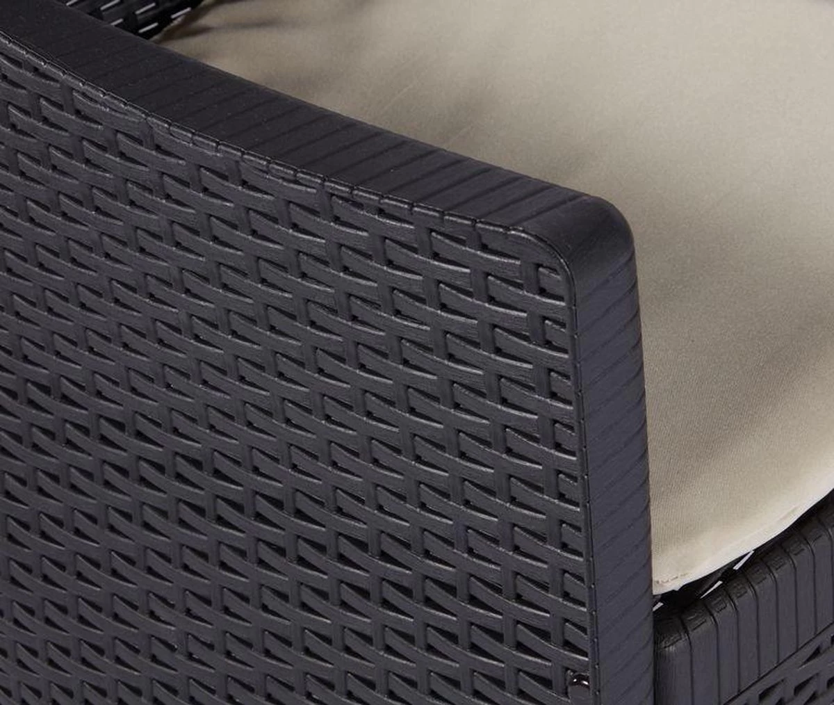 De tuinmeubelset bestaat uit een tafel, 2 stoelen en 2 comfortabele kussens. De balkonset heeft een comfortabele en stevige constructie. De tuinset heeft een rattan-effect, waardoor hij er indrukwekkend uitziet en hij gemakkelijk te onderhouden is.
