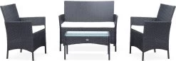 Loungeset 5 Plaatsen Van Aluminium En Eucalyptus – NAZCA – Antraciet Structuur, Lichtgrijs Kussens