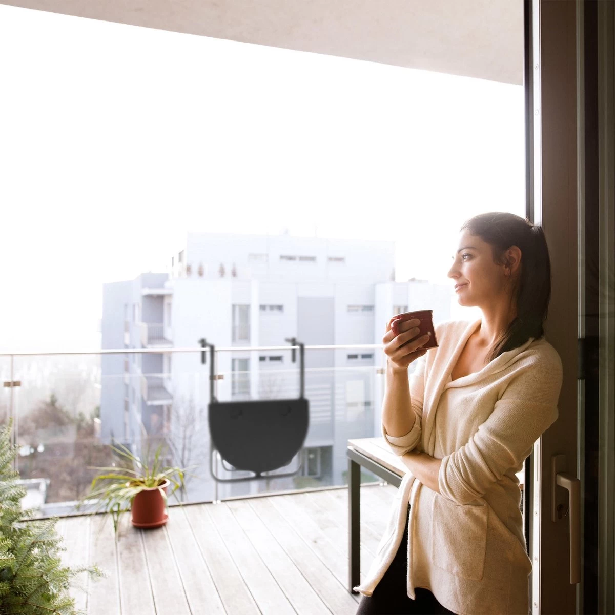 De balkontafel BASTIAN kun je eenvoudig over de reling van het balkon hangen. De hoogte van de tafel kan op drie niveaus ingesteld worden om er voor te zorgen dat de tafel altijd de juiste hoogte heeft onafhankelijk van hoog hoog de reling is.