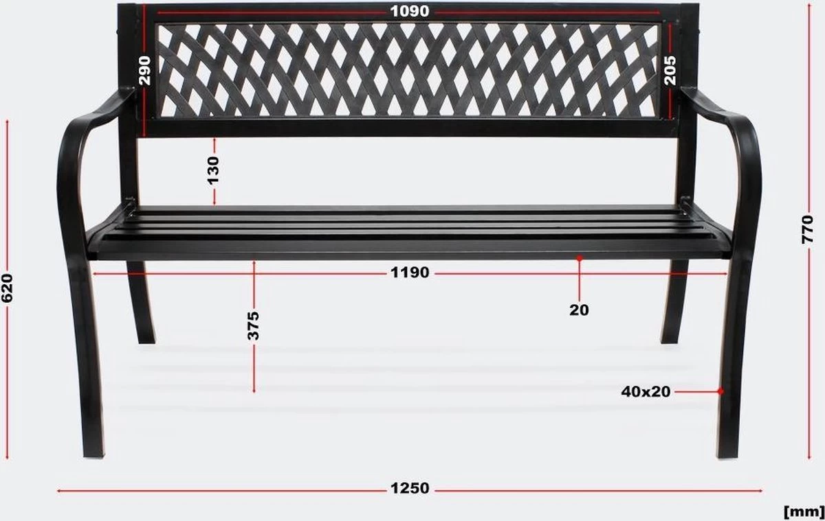 Met deze prachtige tuinbank van gepoedercoat staal wordt elke hoek van de tuin omgetoverd tot een parkachtige oase van welzijn die een moment van rust biedt. Dankzij het nostalgische design is het tuinbankje niet alleen in de tuin neer te zetten, maar ook binnenshuis, bijvoorbeeld in de gang, slaat hij een geweldig en is hij een blikvanger.
