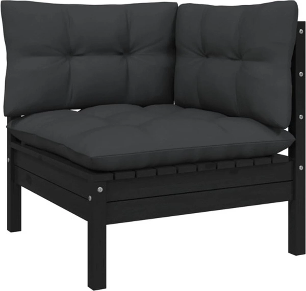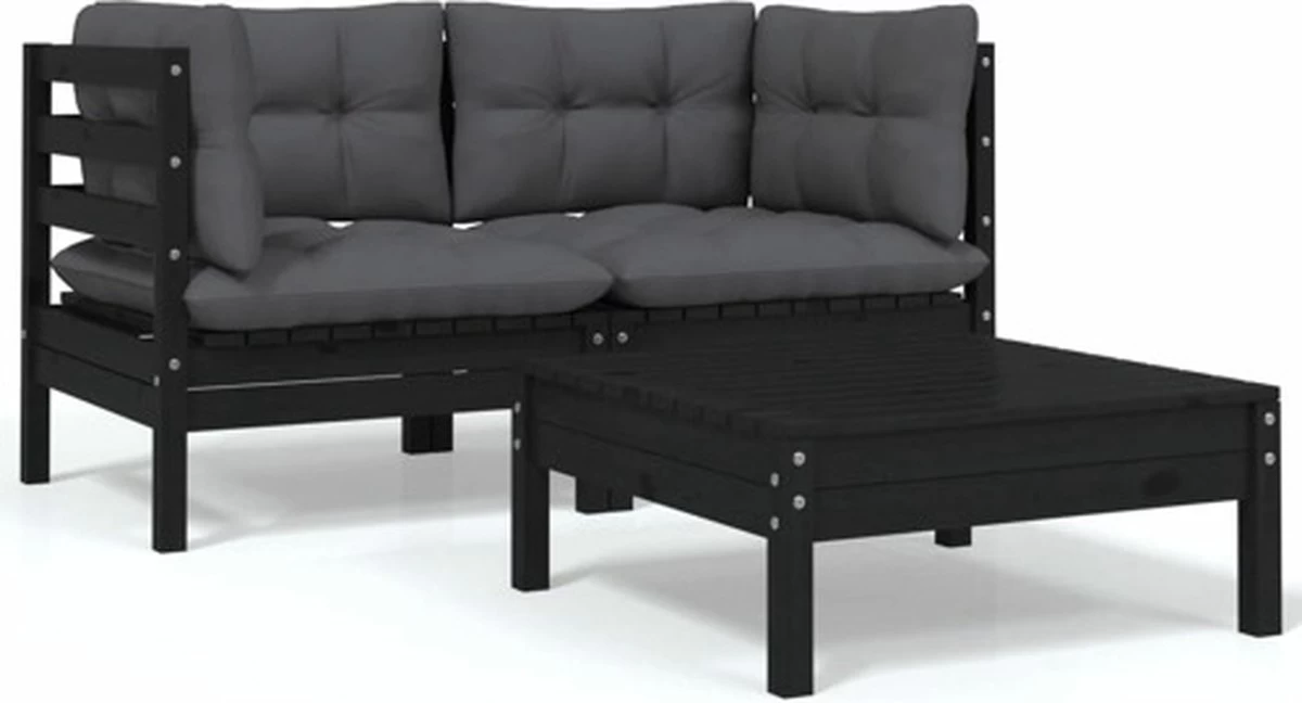 VidaXL 3-delige Loungeset Met Kussens Massief Grenenhout Zwart