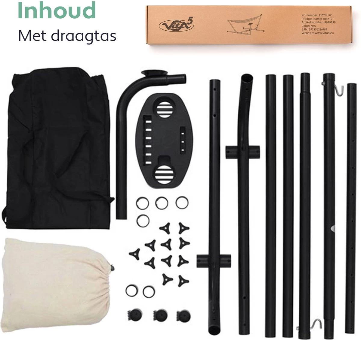 - Robuuste stalen standaard + alle benodigde schroeven