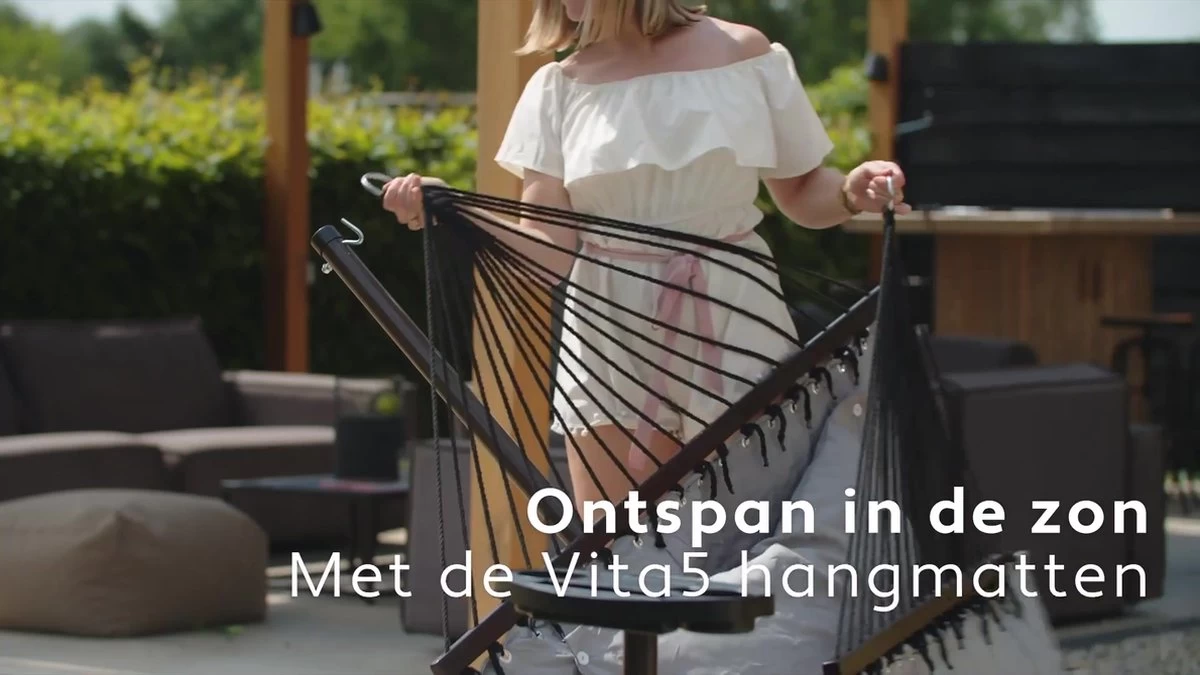 De Vita5 hangmat inclusief standaard en spreidstok is alles wat jij nodig hebt om heerlijk te kunnen ontspannen in de tuin, op het terras of op het balkon! De hangmat heeft ruimte voor 2 volwassenen en heeft een draagkracht tot 200 kg. Het afneembare kussen zorgt voor extra gemak en de hangmat is weerbestendig dankzij de Uv-bestendige materialen.